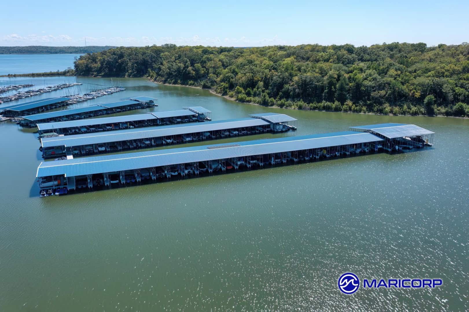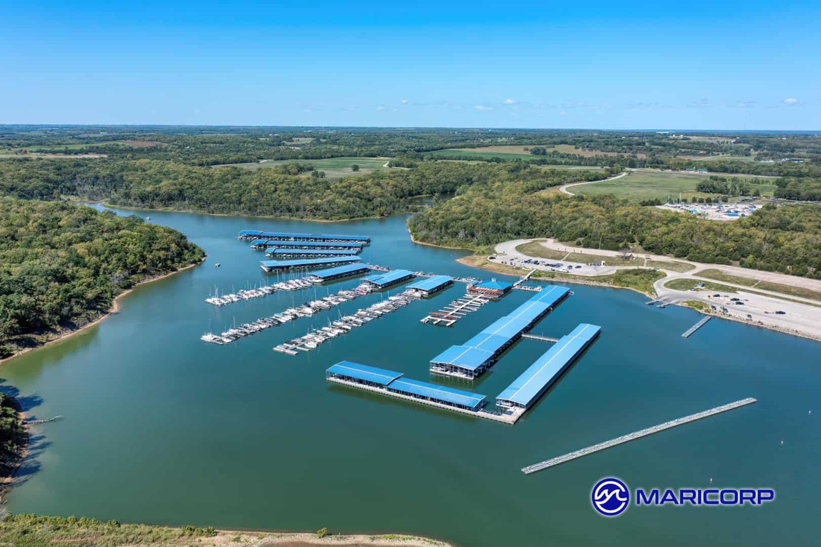 Situated on Clinton Lake in Kansas, Clinton Marina is redefining what a modern marina can be. Operated by Erin and Peter Meiusi, the marina recently teamed up with MariCorp to build what is believed to be the nation’s first fully solar‑powered covered slips. H‑Dock not only adds capacity but runs entirely on solar energy.